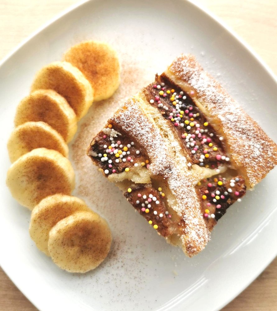 – cynamonowa posypka (1 łyżka cukru wymieszana z 1 łyżką cynamonu)