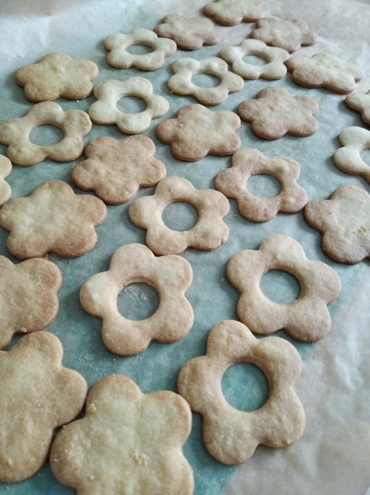 Bardzo kruche ciasteczka przekładane dżemem – moje w kształcie kwiatuszków, jednak Wy możecie stworzyć dowolne kształty, np. serduszka albo gwiazdki. Myślę że jeszcze kiedyś do nich wrócę.