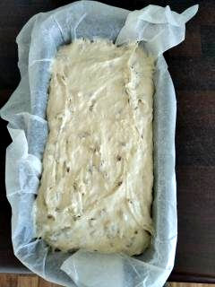 Gdy czas wyrastania ciasta upłynie krótko je wymieszać i przełożyć do foremki. Ciasto z wierzchu dodatkowo możemy posypać ulubionymi otrębami lub nasionkami. Przykryć ściereczką i odstawić na dodatkowe 10-15 minut, aby ciasto jeszcze troszkę podrosło.