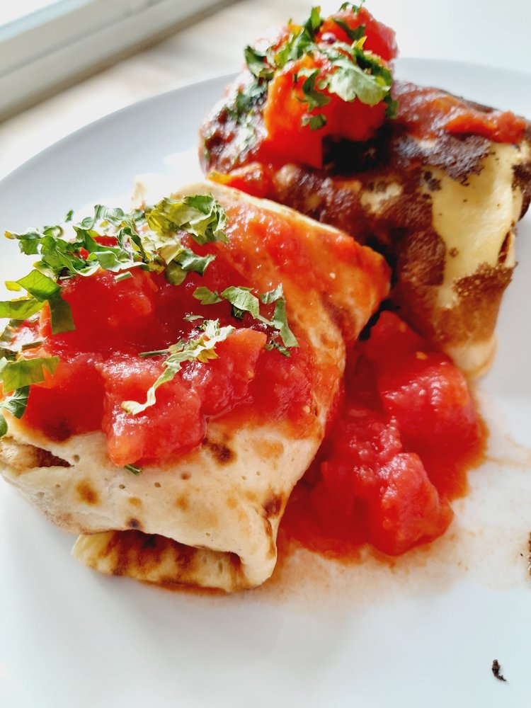 Naleśniki polecam przygotować sobie wcześniej, maksymalnie dzień wcześniej. Polecam ten przepis – ważne aby naleśniki smażyć na dużej patelni, potrzebujemy aby były większe. W ostateczności w tym daniu można użyć gotowe tortille.