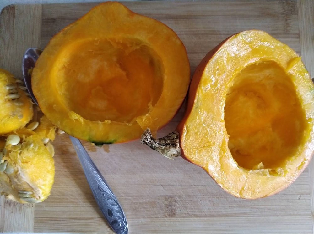 – 1 nieduża pomarańczowa dynia, najlepiej odmiany Hokkaido