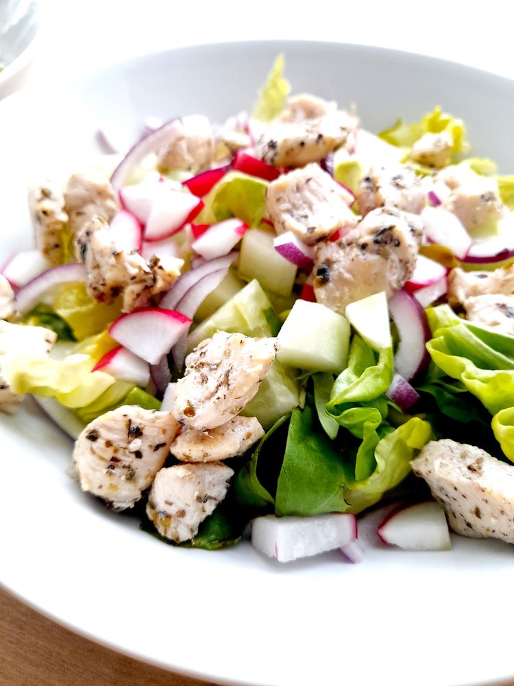 Sałatka z kurczakiem, zielonym ogórkiem i rzodkiewką