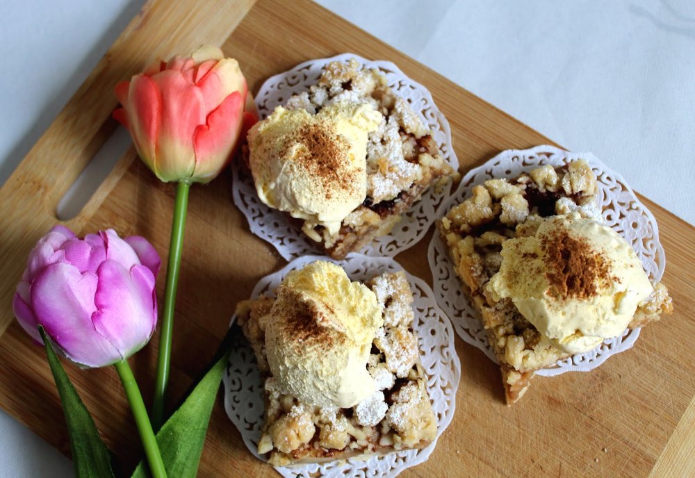 Szarlotka z lodami waniliowymi chodziła za mną ładnych parę lat. Niezawodny, pyszny i szybki deser, który z racji użycia prażonych jabłek wymaga od nas jedynie wyrobienia ciasta. Bardzo polecam.