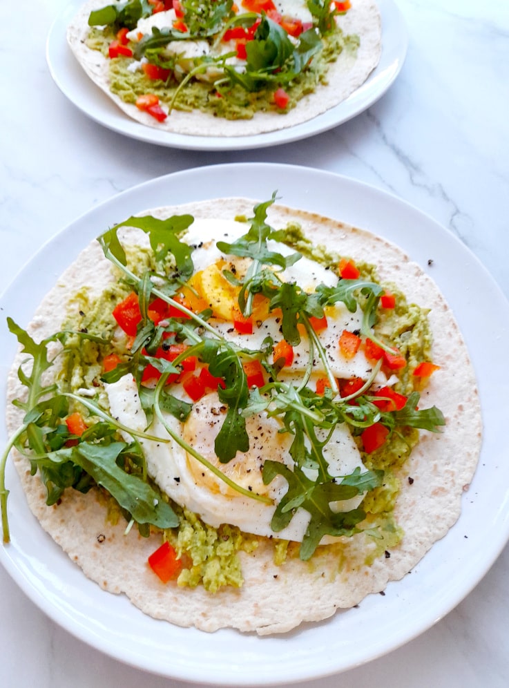 Sycące i energetyczne śniadanie w 15 minut, czyli tortilla z awokado, serem kozim, jajkiem sadzonym i rukolą – prosto i smacznie.
